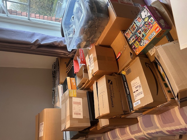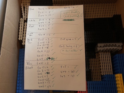 81,082 listed loose lego parts. None have been used. All listed parts are item and colour matched and bagged up. Each bag is numbered with the number of parts. It consists of around 27 cardboard boxes.