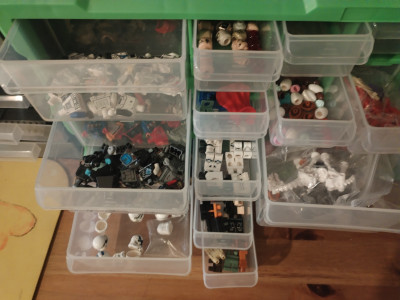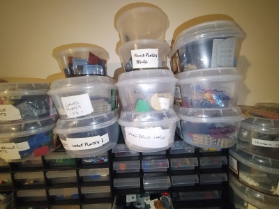 14,462 items in 2676 lots. 90% new, inventory sorted in drawers and marked containers, Includes storage drawers (Aldi) in photos, bag full of grip seal bags/mailer bags in various sizes, a large bag of unsorted bulk used (not added to Inventory) Value based on 6 months average minus 8% comes out at £2085.64 (not including unsorted bulk). Would like £600. Based near Abergavenny, Wales. Would be willing to meet at a reasonable distance.